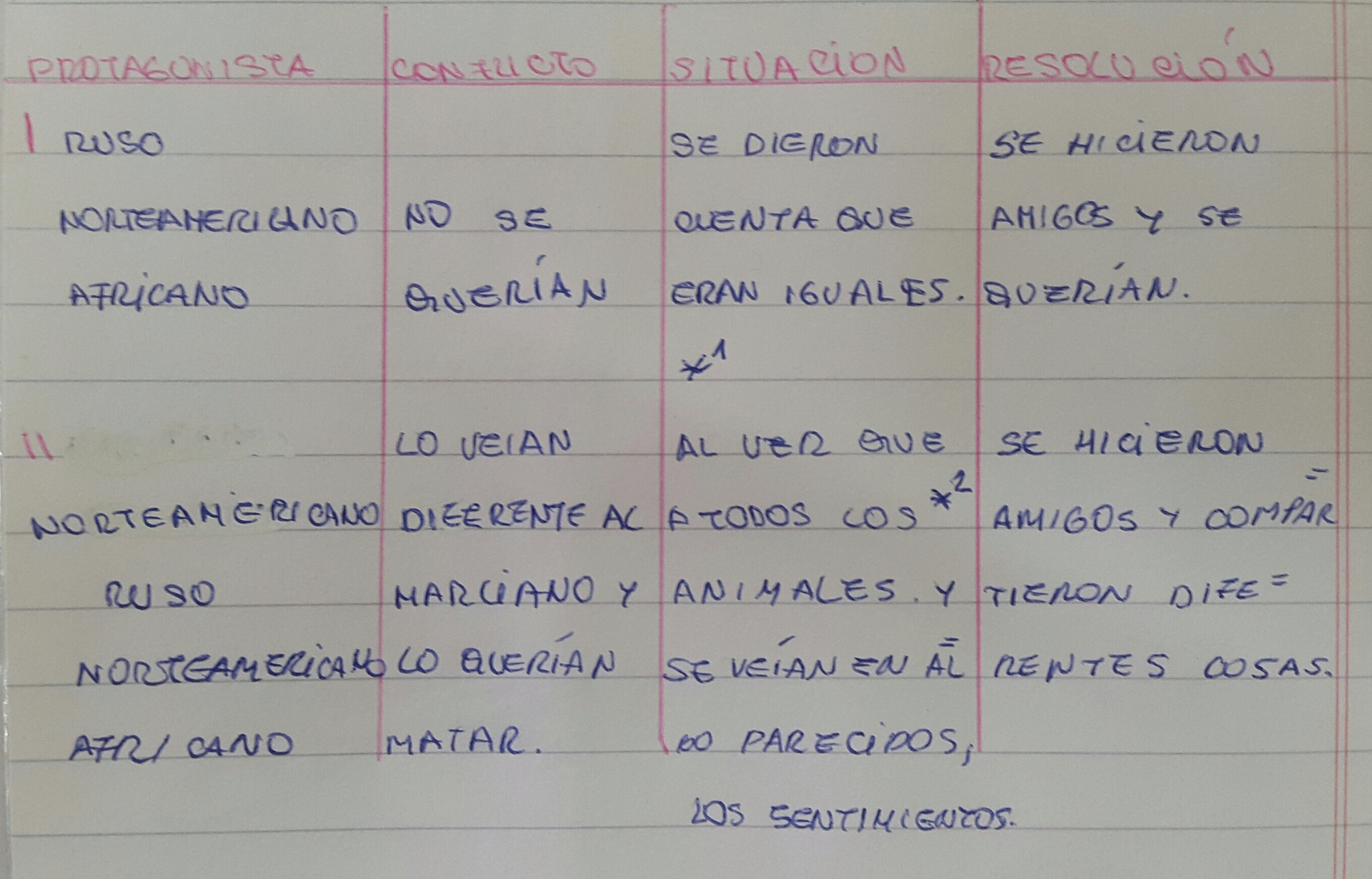 El texto N° 1 es la respuesta de un alumno a su maestra acerca del resumen de un cuento.